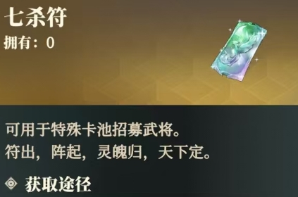 三国志幻想大陆2枭之歌七杀符怎么用大家现在知道了吧,关想要不断扩充自己的武将池,又想要节省资源的玩家,就可以看看本期小编介绍的七杀符获取途径哦,选择一个性价比高的可以让大家有更多资源可利用。