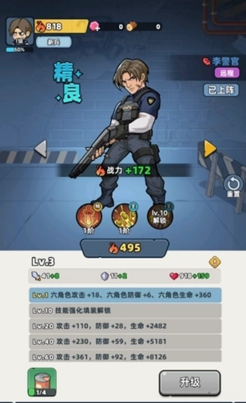 战斗采用半自动即时模式,角色依预设AI逻辑自动攻击,玩家聚焦于宏观调度:通过拖拽操控四人小队移动阵型,依据敌人类型(普通丧尸、变异体、精英Boss)切换职业站位与技能释放时机。每位成员具备独特主动技能与被动天赋,配合不同品质装备(武器、防具、战术配件)可显著改变战局效率。副本通关、日常任务与限时活动均为装备与材料核心获取渠道。