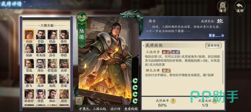 此外,周勃的技能逻辑清晰,便于理解全游戏各模式的基础规则。若暂时未获得该卡,替代人选推荐陆逊。这张卡属于泛用型武将,在多个场景中均有良好表现,尤其在楚汉争霸模式中出场率较高。陆逊兼具辅助与输出能力,既能提供团队增益,也能参与击杀,后期配合其他卡牌可构建多样战术组合,综合表现优异。