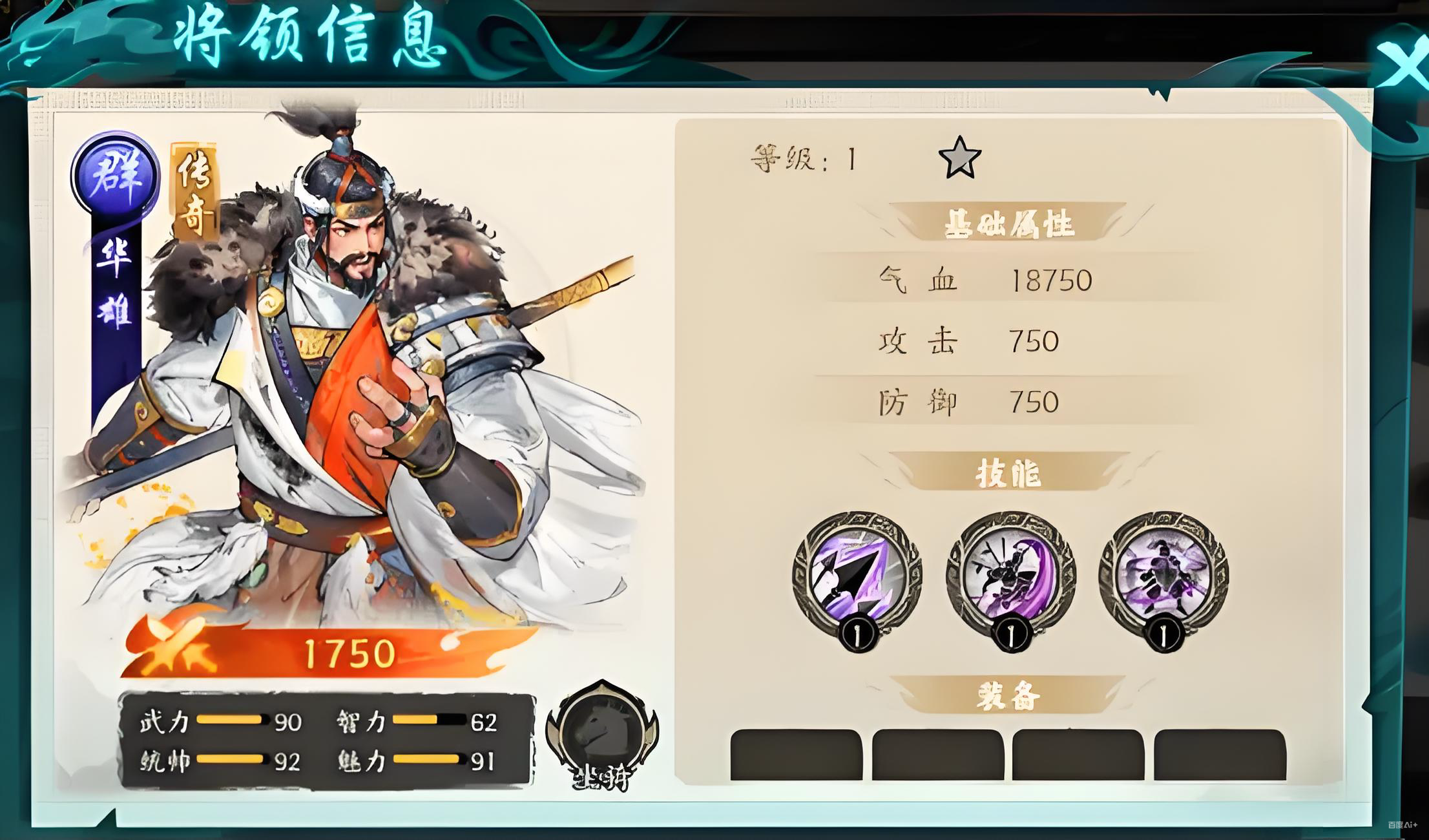华雄是一名兼具输出与支援能力的横排打击型武将。他的怒气技能“连弩激射”通过部署三台弩车,对一整排敌人造成200%基础伤害附加200点固定伤害,并有20%几率使目标陷入麻痹状态,技能升级后整体输出能力大幅提升。这一技能在面对密集阵型时尤为高效,能够快速削减敌方前排或后排威胁。被动“关西猛将”提供额外防御力与技能伤害减免,增强战场存活率;而“悍不畏死”则在敌方单位被麻痹时,为当前血量最低的友军生成护盾,形成良好的联动保护机制,尤其适合与张角等控制型武将搭配使用。