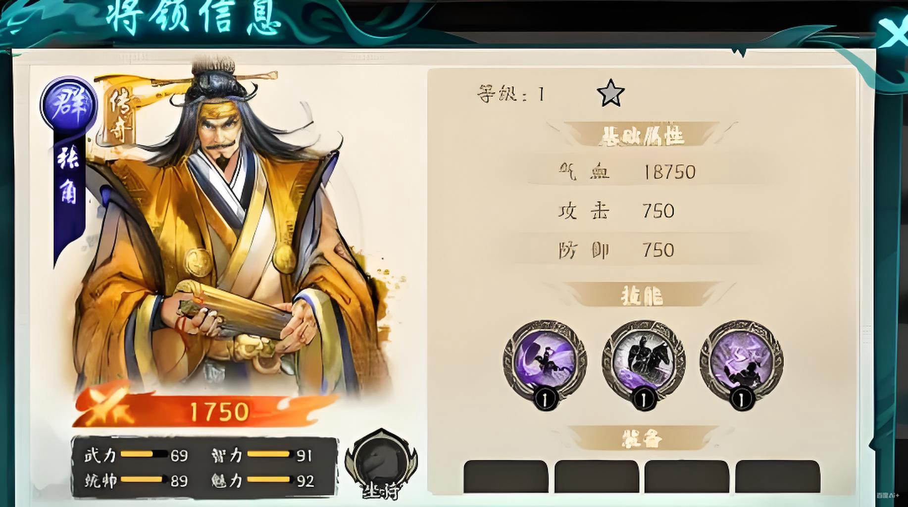 张角是一位非常适合初期过渡阶段的辅助型武将。其怒气技“回天术”可为全体主将施加一个持续5秒的护盾,数值相当于自身最大生命值的5%加上1000点,随着技能等级提升效果更佳。该技能具备极强的团保能力,在敌方爆发输出时能有效防止队伍被瞬间击溃。被动技“天公将军”增加自身气血上限并提高普攻减免率,强化生存能力;另一被动“黄天雷罚”可在攻击时概率触发麻痹效果,优先控制敌方关键单位,限制其技能释放节奏,为团队争取主动权。