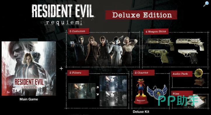 豪华版专属内容包含:格蕾丝·米勒专属服装×2套、里昂·S·肯尼迪专属服装×3套;视觉增强滤镜×2种(末日风格、黑白电影风格);武器外观×4款;浣熊先生主题挂件、DSO徽章挂件各1个;原声音轨及环境音效包;以及一份具有剧情补充意义的文档——“1998年的信”。以上全部内容均以50元差价形式整合进豪华版,无需额外操作即可一键解锁。