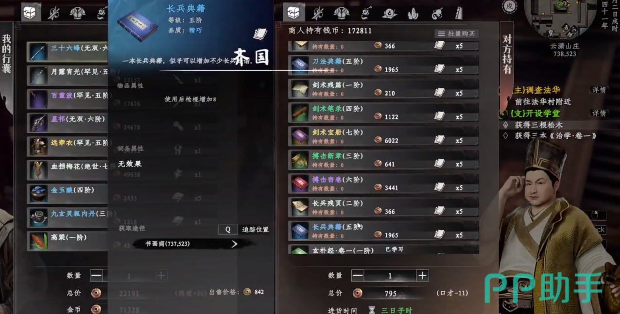 玩家想要找到雷鹏到底在哪里,就需要先完成支线任务开设学堂。这时候玩家先来到坐标触发任务之后,玩家就需要跟村民交互,此时就可以收到筹建学堂所需要的书籍跟木材。这些对于玩家开设学堂会有很大的帮助。在收集木材跟书籍的时候,玩家需要跟商家议价,并且还需要跟工匠讨论材料。目前短缺到底该怎么处理的相关内容。当玩家顺利的完成了这个支线任务之后,此时npc就会透露在玉沙关这一带存在异兽,玩家需要及时的获得玉沙关这一带的权限。