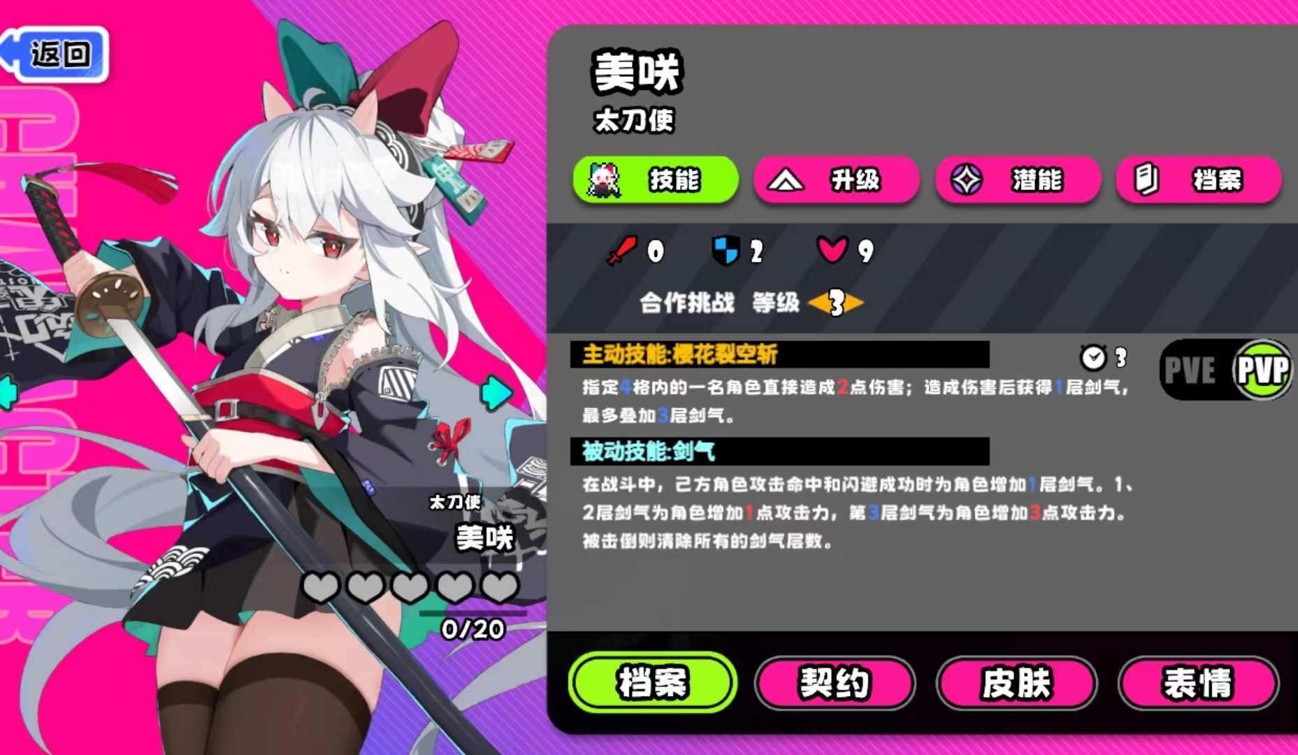 除主动技外,美啖的被动效果也为剑气叠层提供双路径支持:每当己方角色(含自身)成功命中攻击或成功闪避敌方技能时,均可为其增加1层剑气。该机制在合作模式中尤为突出——即使队友处于远距离位置,只要满足触发条件,同样可为美啖提供层数;而在标准模式中,则需完全依赖自身行动完成叠加。每层剑气均提供固定攻击力加成,且该增益为常驻型效果,只要美啖未被击倒,层数与对应属性提升将持续生效;一旦倒地,所有剑气将清空,需重新积累。