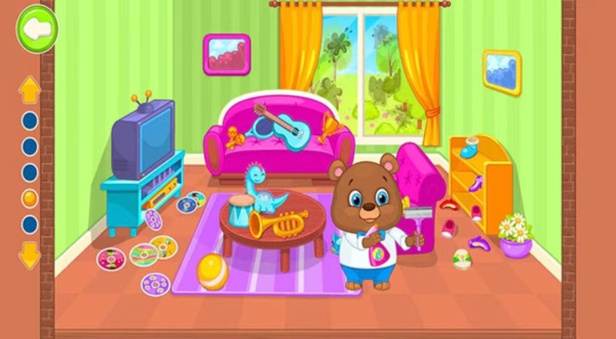 《芭比公主房间》玩家将作为芭比公主的身份,把游戏里面杂乱的家里收拾的非常整洁,把每一个玩具都摆放到正确的位置,把地板打扫的一尘不染。每天都会布置出不同的任务,完成每一个打扫任务都会有奖励,也会逐渐解锁更多的房间和区域。每关卡将来到不同的房间里,必须把房间打扫整洁,摆放整齐才可以前往下一关,在厨房内也需要刷洗碗筷,培养一个讲卫生的好习惯。