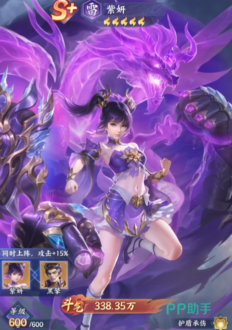 紫妍属于雷属性S+级卡牌,在当前版本中被明确设计为前排承伤兼功能型输出角色。其核心优势在于多重护盾机制与伤害分摊能力。上阵时,若与黑擎共同编队,可激活专属羁绊,使全队攻击力提升15%。该效果在高难度副本与PVP对抗中具备显著战术价值。技能“太虚拳”为基础单体爆发技,基础伤害为180%攻击值;配合天赋系统激活后,普攻伤害同步获得加成,整体输出强度随星级提升持续增强。