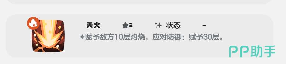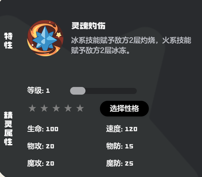 九尾狐的特性为灵魂灼伤,这个特性很好的把它的冰系和火系能力给发挥了出来,先用火系给敌人附加上2层的灼烧,然后在用冰系技能附加上2层冰冻。