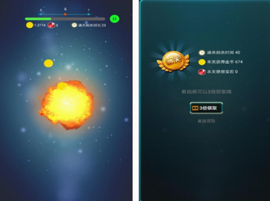 置身于这款可探索星系,又能完成轰炸行星的休闲游戏中,大家可看到简单的操作方式,以及带来的轻松解压游戏体验。涵盖超多的关卡,需要玩家通过单指进行简单的操作,就能展开火力全开的一面,完成游戏中每个关卡,所需要达到的通关要求。属于设计非常独特,仿佛置身于异星球的游戏,还需要在规定时间内完成任务。
