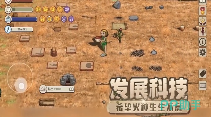 游戏前期大家需要来扮演原始人进行生活,前期需要不断的收集资源,这些资源包括实物资源以及材料等等,对于大家的发展都很重要,前期可以先接触一些植物类型和肉类的食物,主要通过采集来获得植物的选择也是比较多的,大家可以来收集相应植物的种子,比较考验自己的运气,后续种子成熟之后就可以来生产食物。