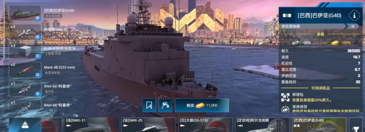 武器配置:主炮+反潜为核心巴伊亚级主武器推荐奥托76主炮(射速1.2秒/发)或155毫米高暴击炮,前者持续压制脆皮船,后者贴脸爆发。导弹选锆石(穿透防空)或东风-17(远程消耗),反潜必带ASW火箭炮(单轮清潜艇30%血量)。防空混搭铠甲-M(拦截导弹)和海公羊(补刀飞机),手动优先锁定反舰导弹。鱼雷用旗鱼(贴脸爆发)或89式(远程DPM高)。