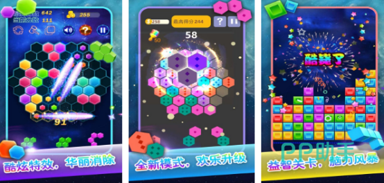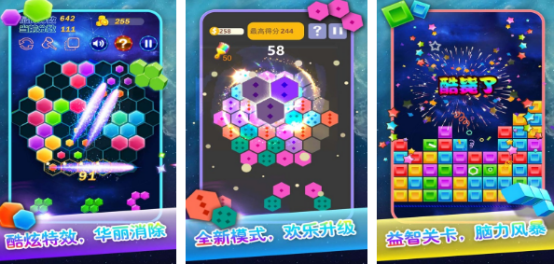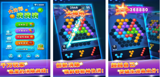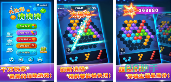 具有特色的六边形消除游戏,更是很多强迫症热衷于选择的简单易上手,但想要获得高分是比较困难的,将六角方块拖到棋盘空白处,完成一列或者一行就能够轻松消除并获得分数。高分记录不断刷新,每次获得分数都会上传到排行榜中,与众多好友一决高下。这些游戏具有多样化特色玩法,除了六边形消消消之外又加入转动魔方,六角消除,四角拼图等,有不同的规则与挑战。