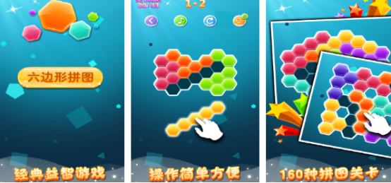 有简单易上手的特色玩法,只要将相同颜色六边形拼图放到空白区域,就能够轻松完成关卡,这样的设计即便是新手玩家也能够轻松上手,享受游戏的无限欢乐。此游戏不仅非常适合强迫症,也适合不同年龄段儿童,通过拼图游戏让孩子们轻松锻炼个人智力,而成年人也能够放松身心,享受简单又有趣的挑战。