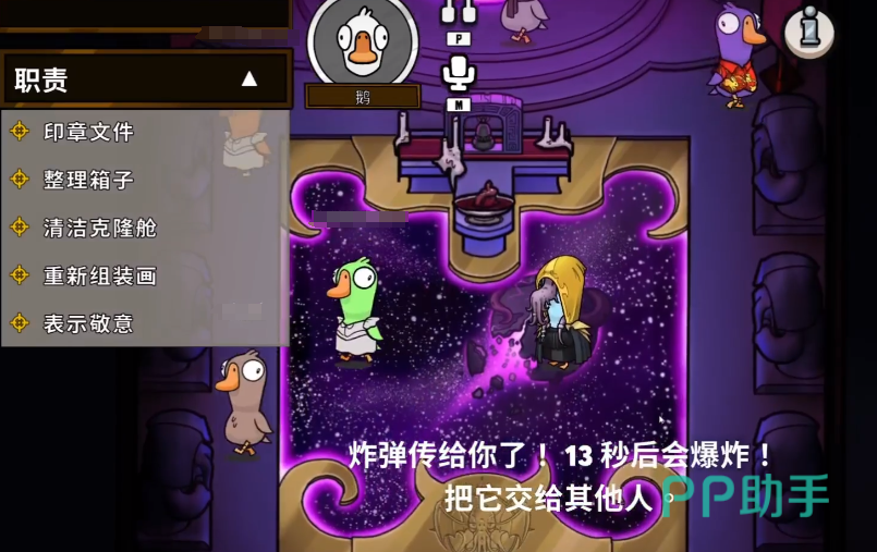 鹅鸭杀不仅是一款注重策略的狼人杀类游戏,还融入了生动的卡通场景与互动机制。玩家将在特定地图中与其他角色共同完成任务或执行特殊技能,而其中“传炸弹”就是一项极具特色的玩法。本篇将详细介绍这一机制的核心角色——炸弹王,以及如何在游戏中成功传递炸弹,帮助玩家更好地理解这个独特角色的操作方式。