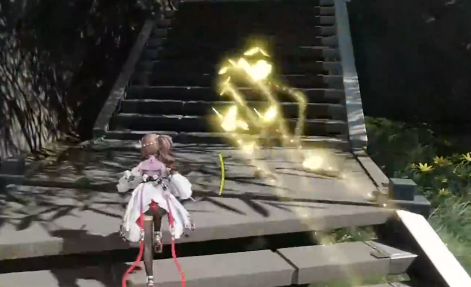 随后搭乘索道升至二层平台,跃上棚顶可获第五宝箱。原路返回二层区域,寻找传送风力装置,助跑跃入后落地于绿化带,拾取首处醚质。沿桥面行进,第六宝箱位于桥体侧边——需先激活桥面发光交互点方可开启。传送回区域起点,转向西南方向抵达天台,借助垂挂绳索攀爬,天台边缘即为第七宝箱所在。深入内部触发钩索机关下降,下楼后于双立柱结构处获取第二处醚质。继续向南行进,追踪盘旋蝴蝶,其分裂为四只后依次触碰,石龙雕像正前方将生成第八宝箱。
