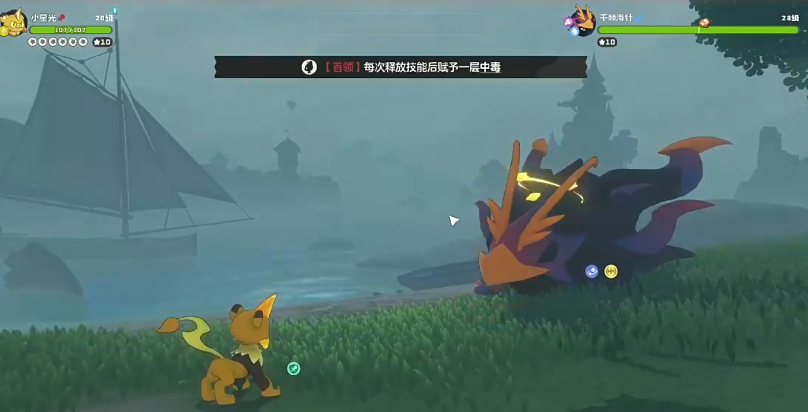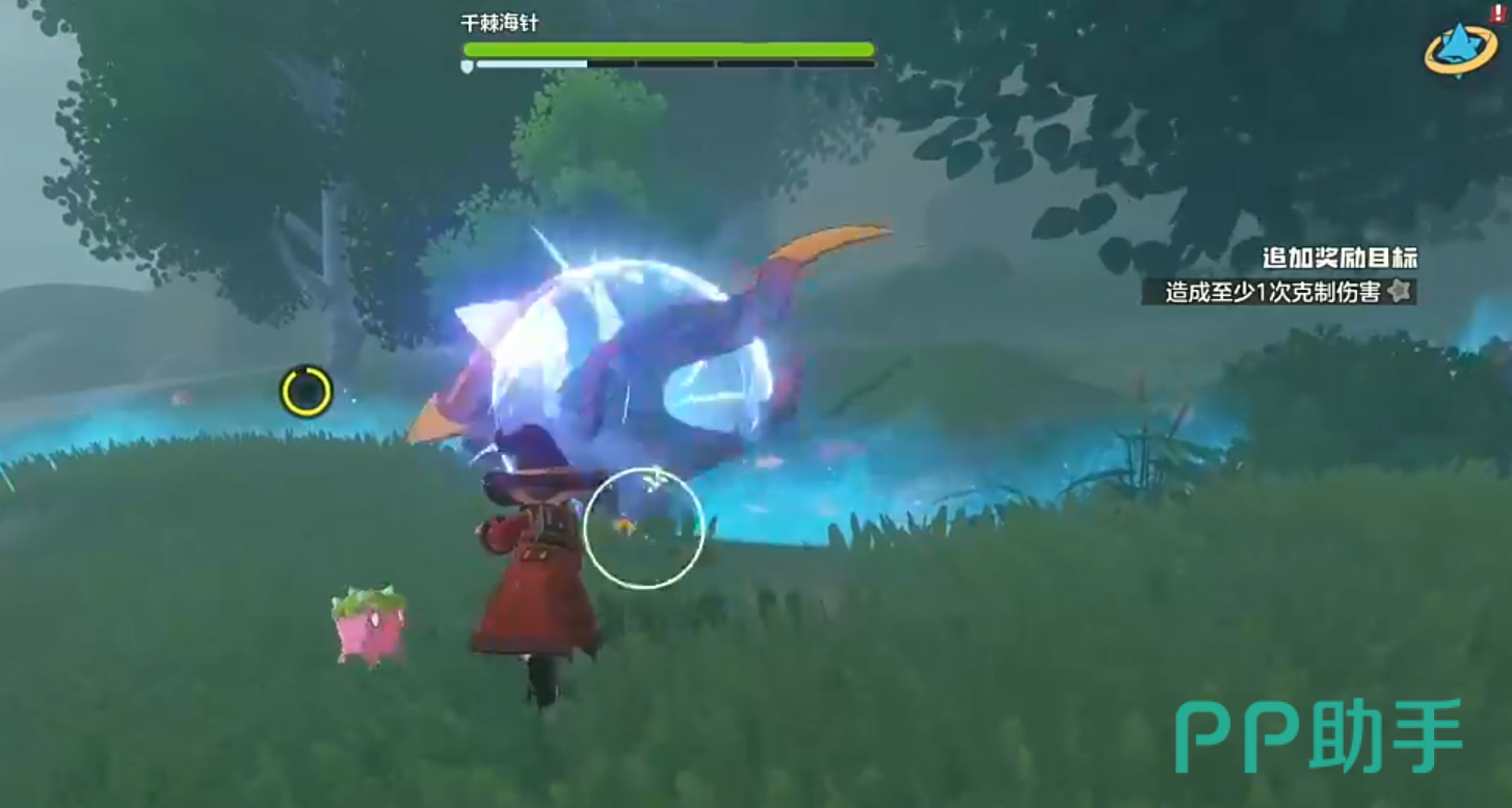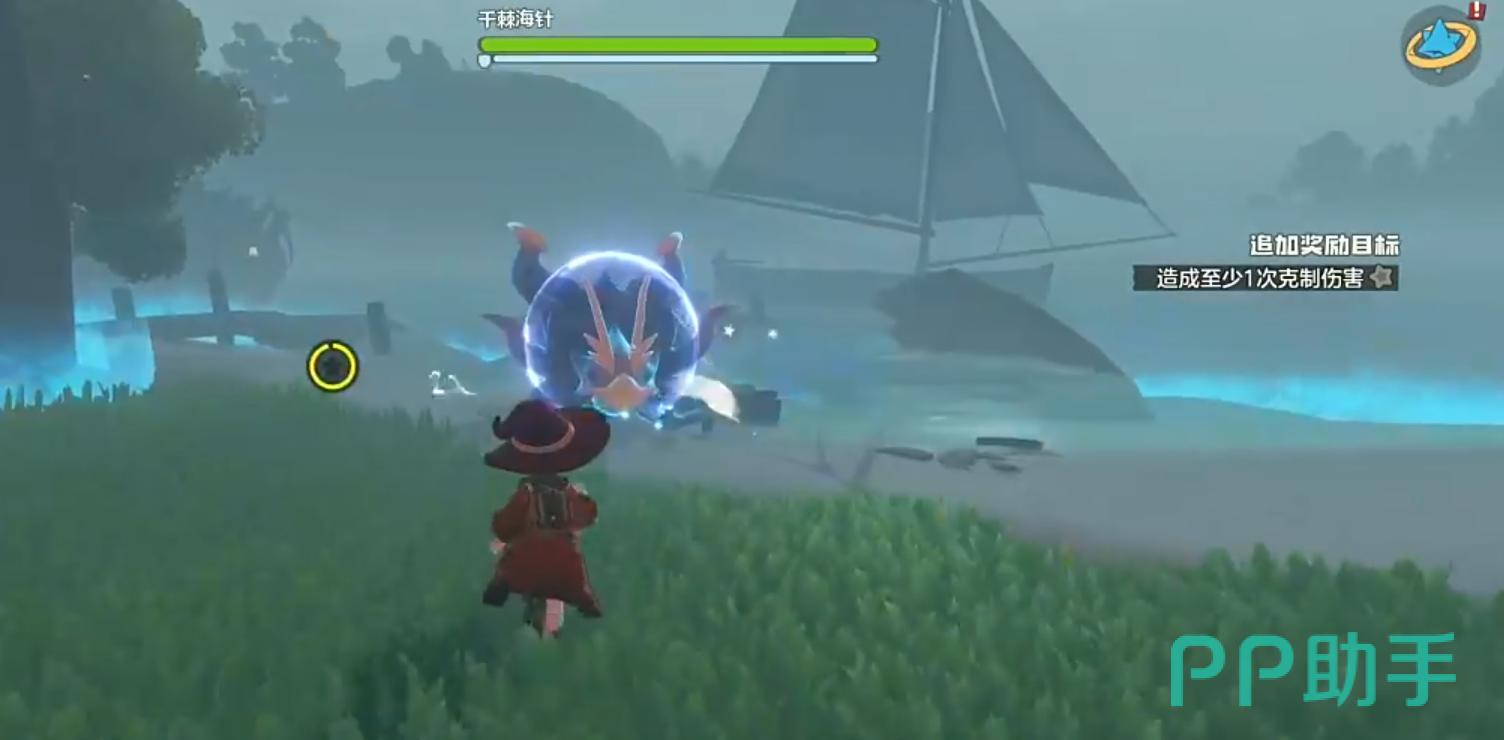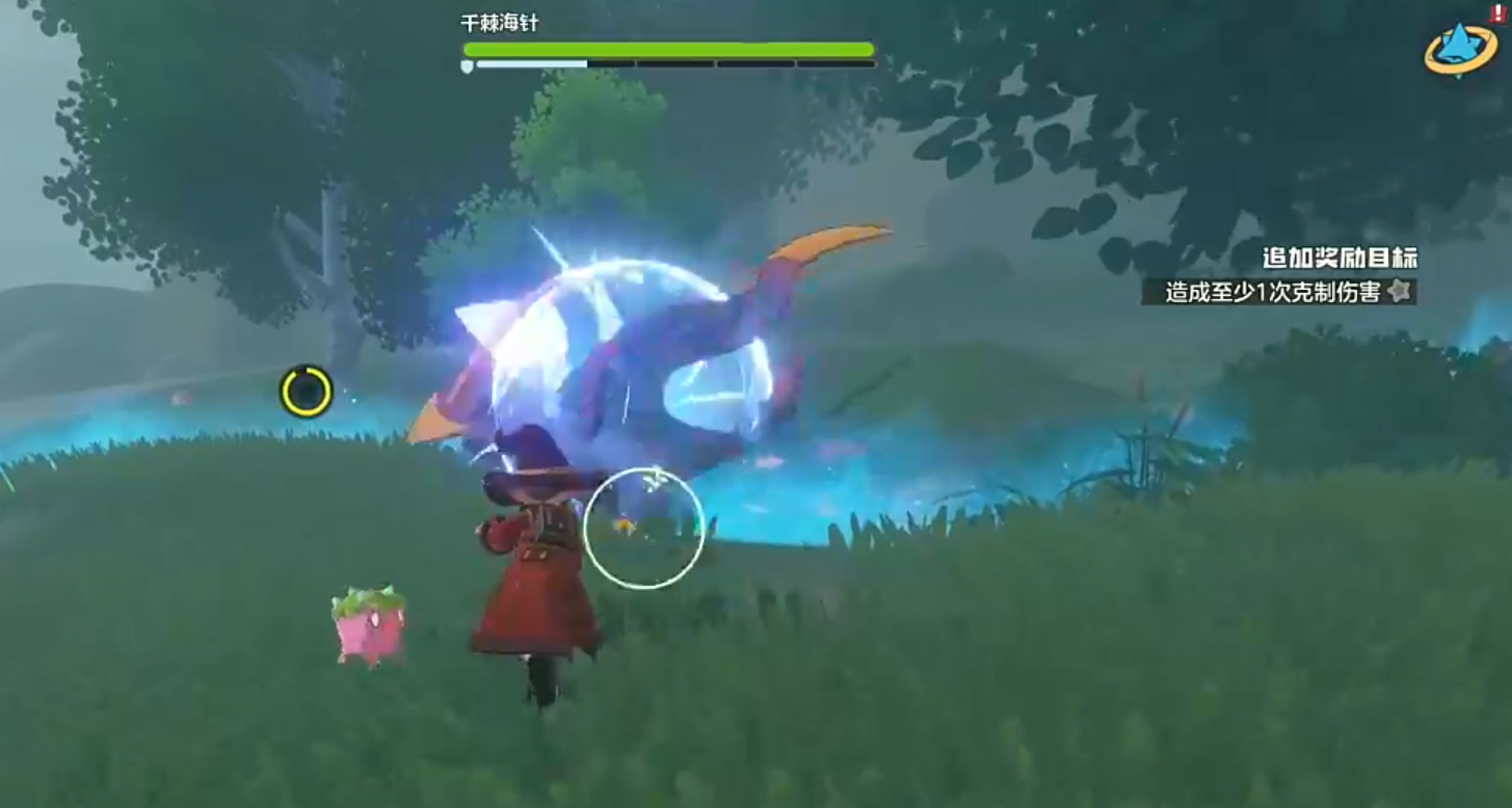 成功破除护盾后,战斗进入第二阶段。此时可召唤精灵进行输出。考虑到千棘海针拥有水系与毒系双属性,选择草系或电系精灵可对水系造成2倍伤害,而地系、幻系、恶系则对毒系同样具备2倍克制效果。推荐使用电系精灵如小星光,能显著提升输出效率,快速击败目标。