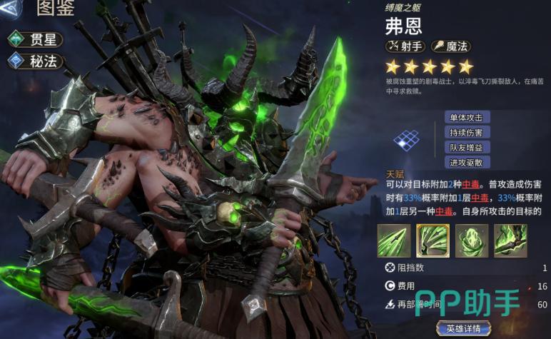 中毒流派的强度随战斗时长呈显著递进趋势。多数核心英雄的属性成长与敌方当前中毒层数直接挂钩,在持久战中越战越强。例如:娜斯佳在中毒层数累积后,可获得攻击、大招伤害及真实伤害三重提升;弗恩随层数增加持续强化无视魔抗能力,并同步提升攻击力;威辛拉同样具备无视魔抗成长特性,进一步放大毒素穿透效果。