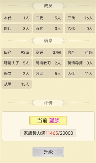 此外,游戏中还有一些特殊的策略,如通过大会升官、完成成就来获得额外的势力值和声望。玩家还可以通过科举考试来提升官职,科举考试分为文科和武科两个方向,玩家可以根据自己家族成员的特点来选择考试方向。