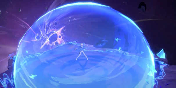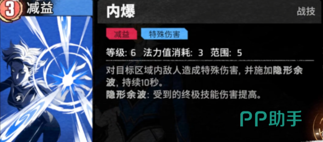 她的二技能“内爆”则具备显著的增益联动效果。该技能在范围内造成特殊伤害后,会触发“隐形余波”状态,持续10秒。在此期间,队伍中任意角色释放终极技能时都将获得额外伤害加成。因此,“内爆”通常作为爆发连招的前置技能使用,适合配合高频率释放大招的阵容体系。建议将其安排在主力输出角色施放大招前释放,以最大化团队整体输出效率。