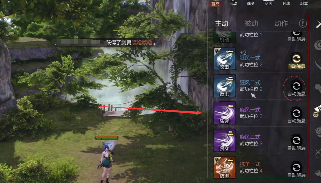 值得一提的是,技能设置,需要按照特殊技能、武功技能、辅助技能这三个方面进行合理搭配,在武功类技能搭配方面,例如短刀的暗袭,亦或是力士的天崩地裂,应该排在自动释放技能的第一,而特殊技能,例如隐身技能或者控制技能时,玩家可以使用手动操纵的模式进行释放,当然,也可以将其调整为第二个释放。