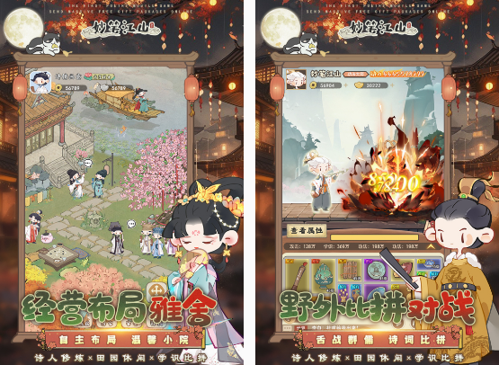 这款采用q版的画面,为大家所设置的游戏中,可看到融入了中国诗词文化这样的题材,仿佛进入了古代一样,拥有着充满着诗意的诗词世界。画面竖版的风格给大家所设置,无论是经营布局还是在野外比拼对战等,都能看到充满国风的设计。你将化身为里面的各种角色,仿佛成为了古代的诗人一样,可通过科举文采排行来展示自己的水平。