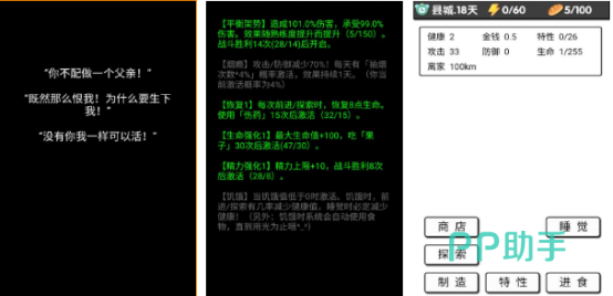 具有特色的文字冒险手游,将扮演一名离家出走的小男孩,仅只有16岁突然间来到荒野当中,在充满危险与危机的荒野当中求生。游戏拥有相当出色的剧情,足够丝滑的独特模式,看似以文字这样的简单玩法反映,却能展现出社会的现实问题以及险恶的人性。可能会触发很多随机事件,比如遇到毒蛇猛兽,遇到他人的打击等等,要通过各种合适的方式去解决。