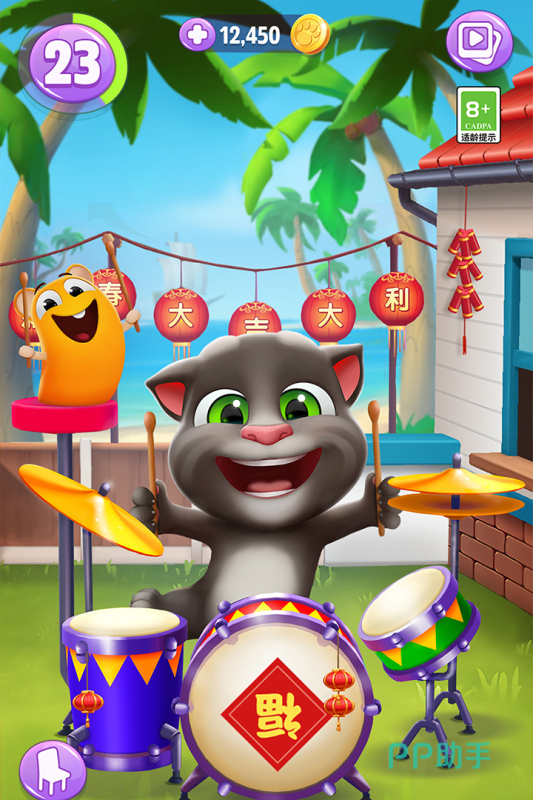 有一只非常可爱的汤姆猫形象,它可以扮演成警官或者是建筑工人等形象。在这款游戏里面大家可以和汤姆猫一起进行互动,比如说愉快的进行小游戏。大家可以根据汤姆猫的饮食习惯,为他准备好美味的食物,并且可以采用帽子或者是太阳镜对它进行装扮。汤姆猫还会和人类进行亲密的互动,比如说模仿说话的声音。