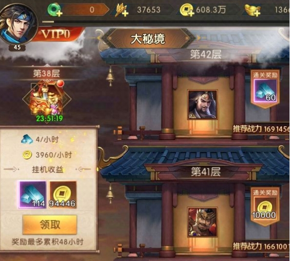 幻境副本包括多个专一资源产出的副本,大秘境副本是爬塔副本,是获取装备的最佳试炼平台,能为武将培养提供素材,挑战时考验玩家对武将的培养和阵容搭配,比如在挑战过程中,玩家需要根据敌方阵容的特点,合理选择武将进行战斗,如果敌方阵容以高物理输出为主,玩家可以选择防御较高、具有减伤技能的武将在前排,法师类武将在后排进行输出,同时玩家还可以利用武将之间的羁绊效果,增强阵容的整体实力。