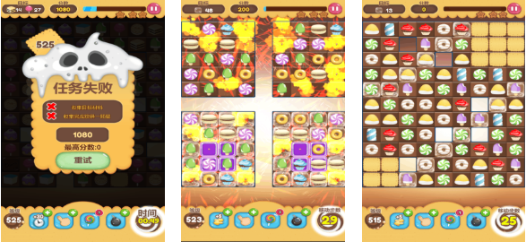 这是款将甜品主题和三消模式结合的休闲作品,排列好三个相同的甜品即可进行消除,消除得分并解锁更多道具的设定很良心,巧克力、冰淇淋等新鲜可口的甜品令吃货朋友眼前一亮,关卡多样且任务目标丰富大幅提升了可玩性,任务失败也能快速重启关卡不会消耗体力,相信三消游戏高手都跃跃欲试想玩这款甜品手游了。