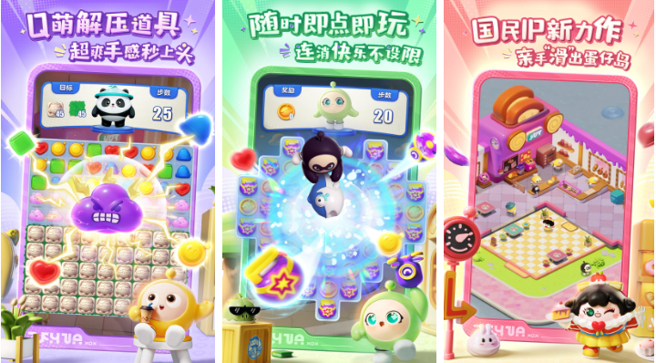 这款经过蛋仔IP加持的三消作品操作性质完善,萌哒哒的小蛋仔也会辅佐大家快速消除目标,三消加建造经营类的元素增加了可玩性,多样buff道具亦可尽情使用快速完成消除目标,多样关卡跟超解压的气氛令大家瞬间上头,连续消除触发的震撼视听感受令大家血脉喷张,通过建造经营自己的蛋仔岛也会获得满足感哟。
