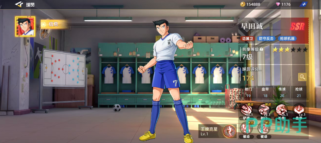 早田诚作为SSR稀有度的球员,在整体强度上具备长期培养的价值。通常情况下,推荐将其部署在边翼卫的位置,以最大化其防守反击能力。他也因此被玩家们称为“抢球机器”,体现出他在断球方面的突出表现。该球员的综合评分为174,在同等级别中属于正常水平。具体属性方面,射门为19分,盘带为18分,传球达到20分,而抢球高达21分,是其最强项。从六维能力图来看,争顶能力最弱,仅有15分,因此在实际对战中应尽量避免让他参与高空对抗。