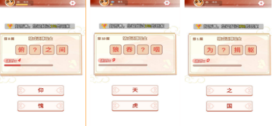 休闲的答题手游,其中加入较为丰富的成语库,涉及较为广泛,所有小伙伴都能参与其中,每个关卡都拥有两个选项,而成语仅只有一个空缺,通过点击选项的方式来完成填空,整体玩法较为简单,老少皆宜,即便是低年龄段,小朋友也能参与其中,不断扩张成语知识。