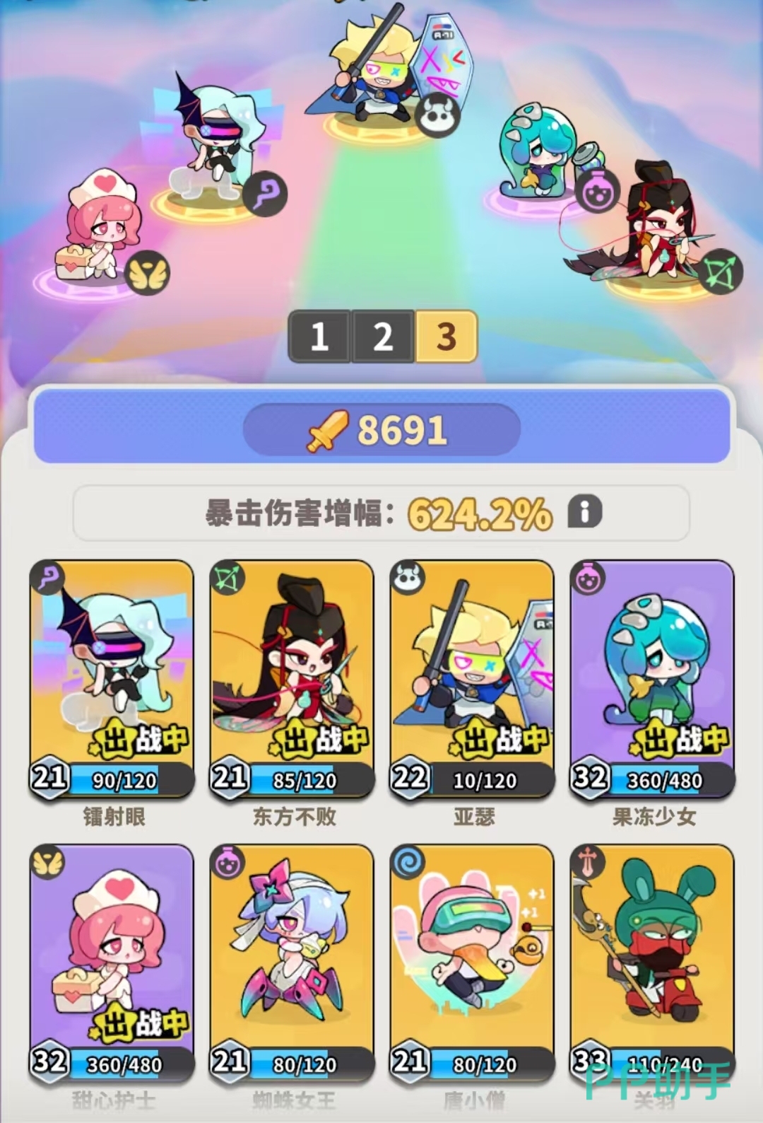 该组合以高覆盖率AOE输出为核心逻辑。镭射眼的激光具备屏幕内多次反弹特性,在获得对应强化后可形成持续压制型伤害区域;东方不败则凭借极高的单体穿透能力与飞针爆炸词条适配性,实现对密集小怪与高血量Boss的双重压制。前排推荐亚瑟承担承伤与控制衔接,甜心护士提供稳定群体治疗,果冻少女补充额外范围伤害或施加减益效果,整套体系攻防节奏清晰,容错率较高。