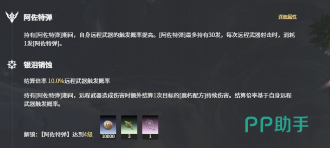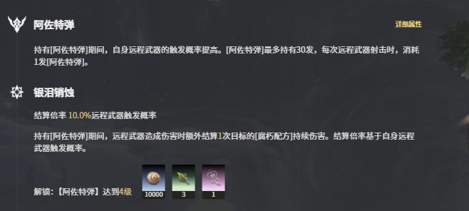 阿佐特弹是贯穿其战斗机制的核心资源,当拥有子弹时,远程武器的触发概率将显著提升。每次射击都会消耗一发子弹,但此消耗极为值得——解锁后通过子弹攻击可额外触发持续伤害效果,从而间接增强整体输出能力。在阵容搭配方面,由于达芙涅属于风属性辅助,推荐与其配合风属性主C角色,以便让风系进化配方发挥追加伤害效果,实现团队输出最大化。养成路径上,优先将突破等级升至4级以激活被动技能,达到第5阶后可获得攻击提升,被动增益幅度达30%。