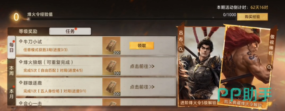 每日登录、完成1场匹配对战、取得1场胜利等基础行为,均可稳定产出烽火令。该类日常任务门槛低、完成率高,是新手玩家前期积累资源的关键路径。坚持7日连续完成,还可额外激活连击奖励,单日最高可获烽火令达120点,为快速解锁战令等级奠定坚实基础。
