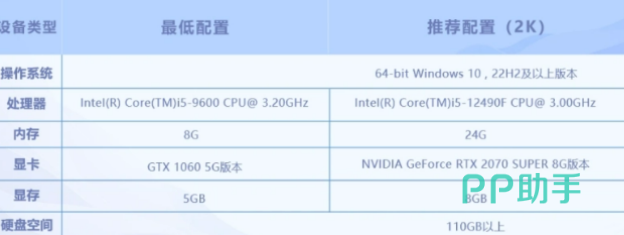 硬件基础决定上限。官方标称最低内存为8GB,但实测显示该配置在中等画质下已频繁出现帧率波动,难以保障稳定输出。建议将内存升级至16GB作为流畅运行60帧的基准线;若目标为2K分辨率下的高帧率表现,则需搭配Intel Core i5-12490F或同级处理器、24GB内存及NVIDIA GeForce RTX 2070 SUPER(8GB显存)显卡。硬盘空间须预留110GB以上,以容纳本体安装及后续大型版本更新。追求4K分辨率体验的用户,推荐采用i7-13700F处理器、32GB内存与RTX 4070 SUPER(12GB显存)组合,存储需求仍不低于110GB。