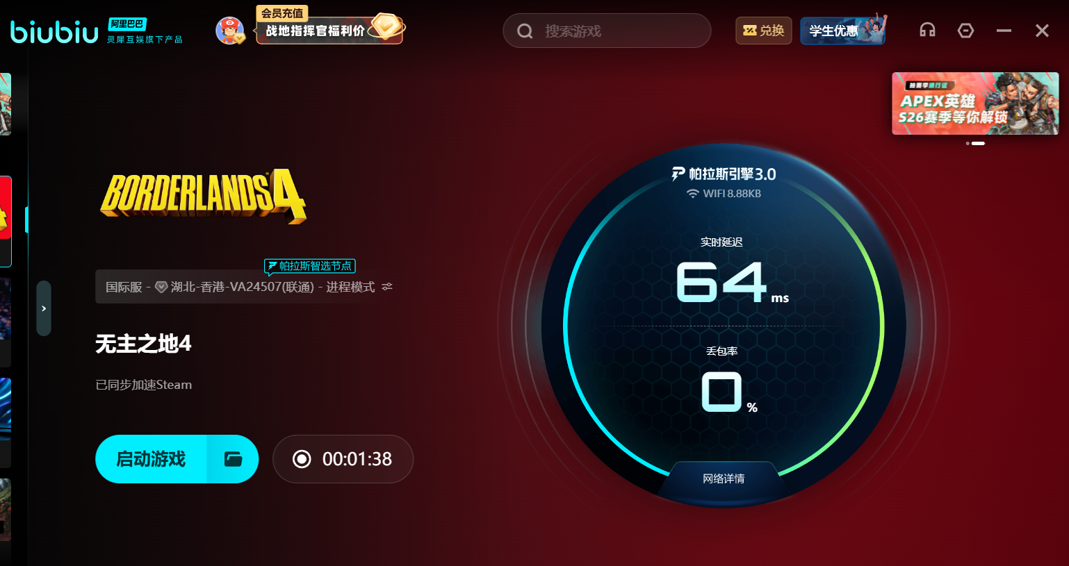 biubiu近期更是携手顶尖电竞选手AixLeft重磅升级帕拉斯引擎3.0,这款专为大型游戏打造的智能核心,通过智能路由切换和多链路避障技术,为无主之地4等大作提供底层级传输保障,智能路由规避拥堵、多重链路应对故障,打造可靠传输路径。
