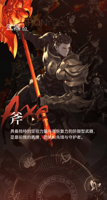 斧术士在游戏当中是坦度最高的一个职能,他也有两个发展方向,一个是全坦克型的前排战士类流派,第二个是狂战士类流派,无论玩家选择哪一个流派,都可以通过切换主武器的方式,来进行路线的更改。