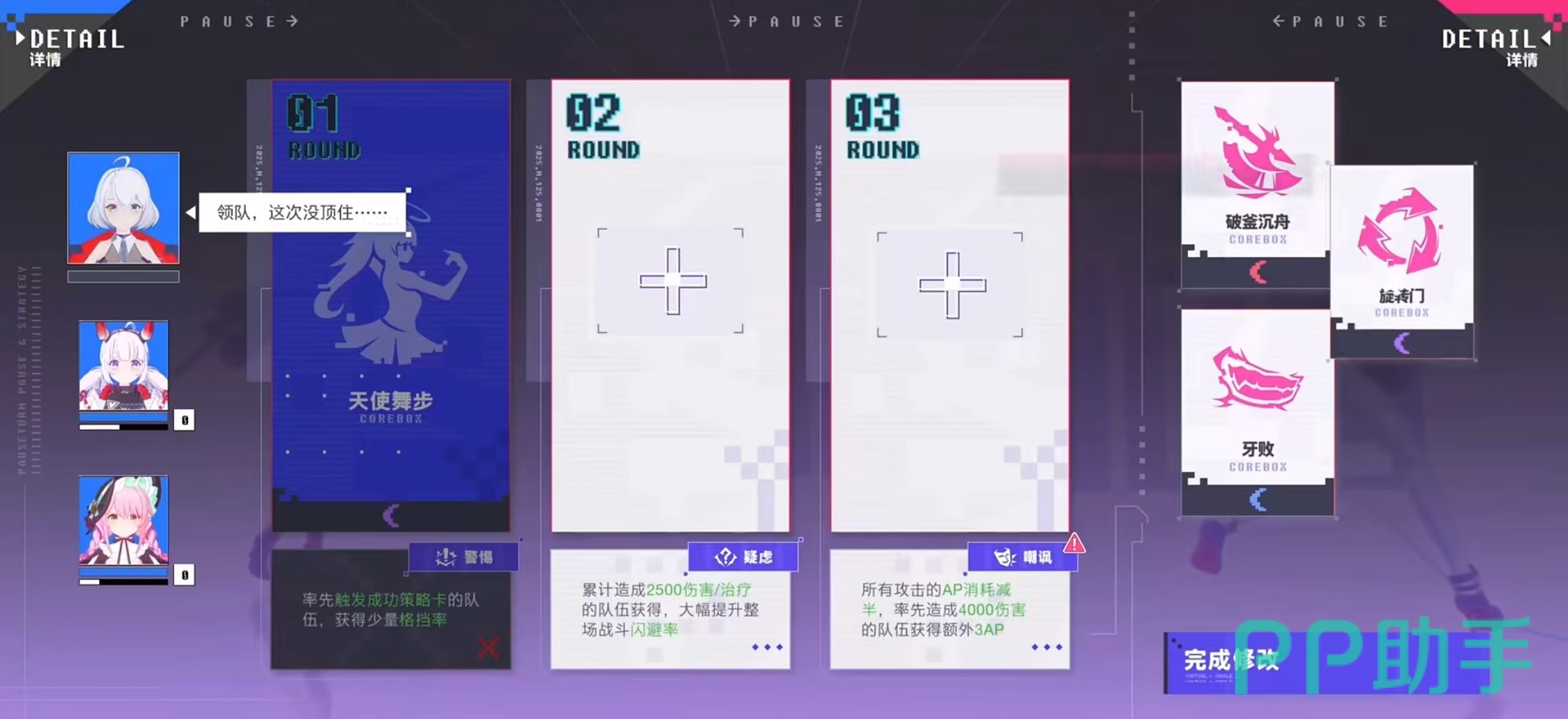 此外,角色间的羁绊系统也会对团队轴产生显著影响。例如安可与星瞳之间存在特殊关联:每当队伍触发一次暴击,全队所受的暴击伤害减免便会下降1%。这就要求玩家在战斗中有意识地提升暴击频率,以加速该增益的叠加进程,从而增强整体生存与反制能力。同时,每回合存在的爆发节点争夺也为战术增添了不确定性。为抢占爆点或打断对手节奏,有时需临时调整出手顺序,集中资源快速达成条件,或在关键时刻实施干扰。这要求团队轴具备足够的灵活性,以应对瞬息万变的战场局势。