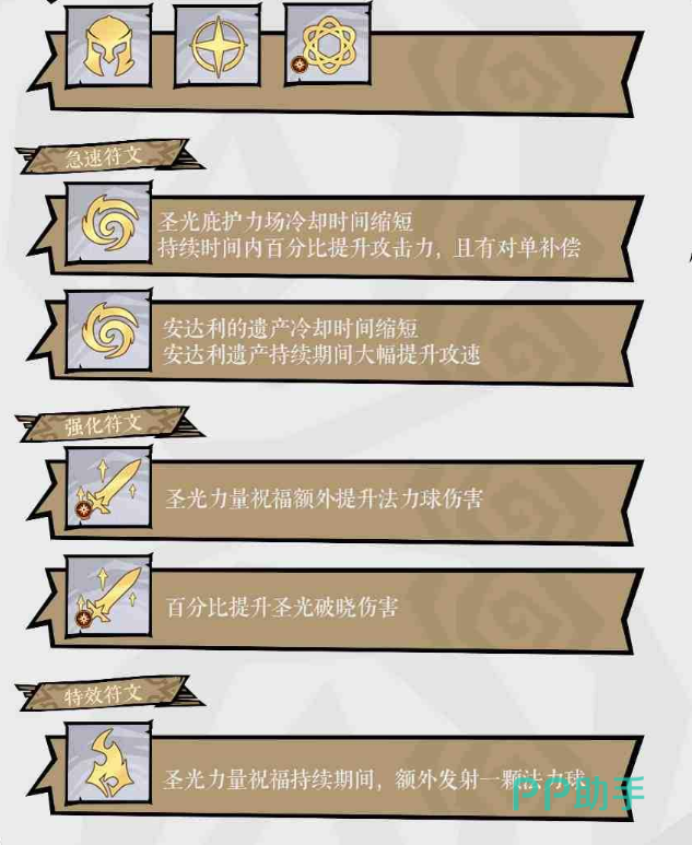 这是一个潜力巨大的流派方向,尽管当前符文配套尚不完善,但未来成长上限极高。关键技能“圣光力量祝福”为法师职业开辟了全新构筑路径——它能将普通攻击的法力球转化为神圣法力球,从而激活高攻速下的多段伤害机制。装备搭配首选“圣光裁决”四件套,不仅大幅提高法力球基础伤害,还能将攻速堆叠至接近190%,而光系流派的最大优势正是来源于这两件套与四件套的独特加成效果。