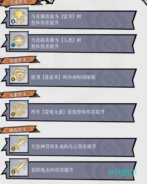 该流派以首位传奇英雄为核心,这位金色头发的角色拥有专属召唤物“雷牙”,基础属性自带攻击百分比加成。雷牙每次攻击可造成300%雷电元素伤害,并附加重伤状态,显著提升整体输出效率。最适配的套装为“雷公之怒套装”,装备后角色移动速度大幅提升,宛如“跑图机器”,配合落雷与巨狼协同作战,清怪效率极高。词条方面优先刷取雷电元素伤害,主增伤部位优先考虑攻击类词条而非主宰技能伤害。前期过渡推荐使用“巫师外形服”来强化召唤物攻击力。武器配置为主手科斯的旗帜,副手时光沙漏。符文搭配可参考图示方案进行构建。