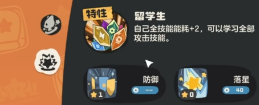初始可习得技能包括落星、寸拳、气波与防御技。其中,落星为物理系单体伤害技能,适用于稳定输出场景;寸拳兼具伤害与能量返还效果,每次命中可恢复1点能量,在高频技能循环中具有战略级续航价值;气波作为魔法系输出手段,有效补足物理输出盲区;防御技可削减70%所受伤害,是应对爆发压制或关键回合保命的核心应对手段。