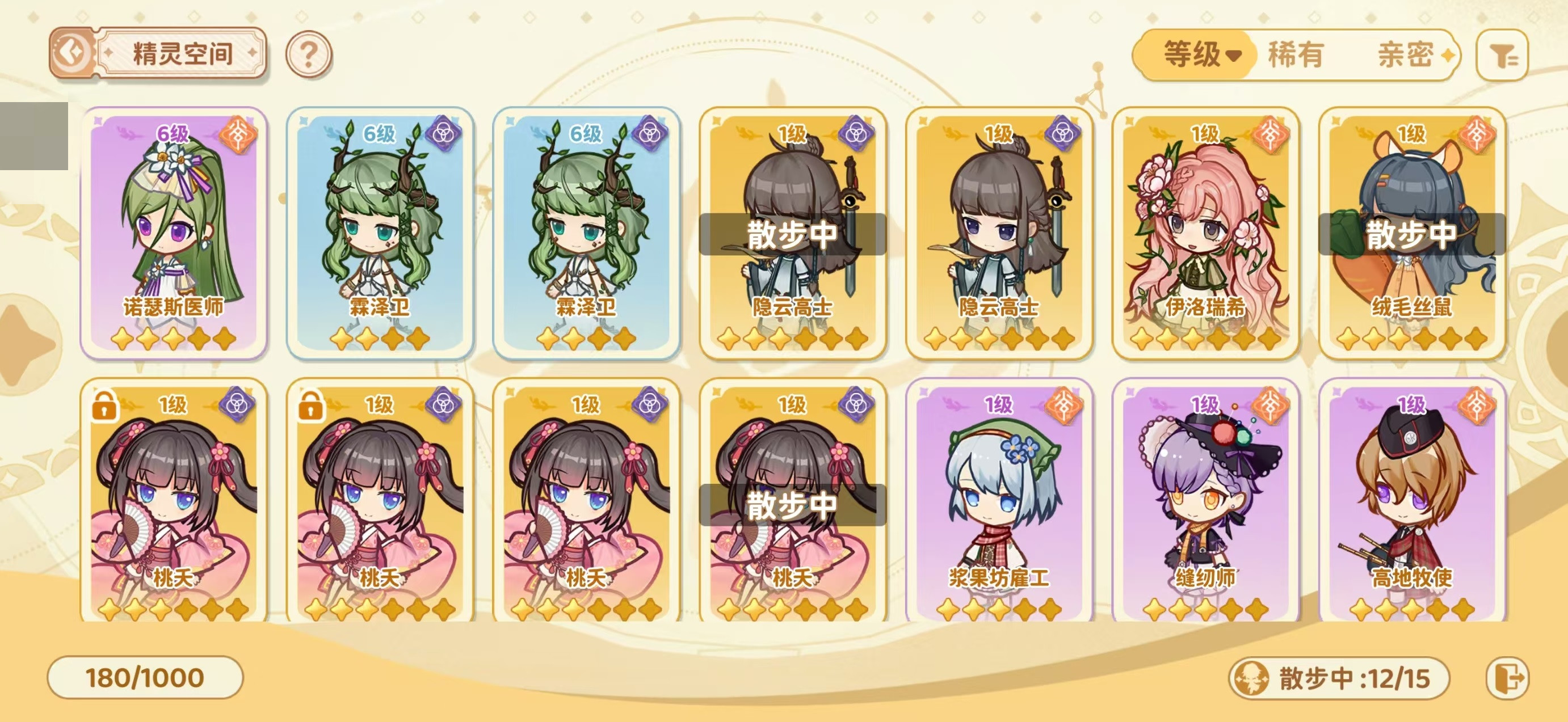 成功获得的精灵统一收纳于“精灵空间”,此处支持多维度管理:包括查看全图鉴、赠送礼物以提升亲密度、使用“经验药水”进行等级培养。精灵等级直接影响两项关键上限——技能等级上限与能量值上限。需特别注意,所有行动(如采集、烹饪、钓鱼)均需消耗能量值,能量随时间自然恢复,不可即时补充。此外,每位精灵拥有“标准体型”与“迷你体型”两种形态,通过消耗“神奇药水”可在二者间自由切换,该操作不改变属性,仅影响视觉表现与部分场景交互反馈。