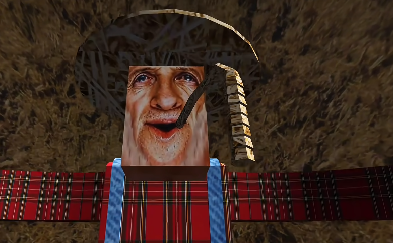 进入约翰的农场后,玩家将置身于一个看似平静却暗藏玄机的广阔农庄环境中,目标是通过探索与推理解开层层谜题并最终逃离。整个场景以农田为核心区域之一,在这片土地上矗立着一个造型怪异的稻草人。当角色靠近该物体时,会立即触发隐藏事件——玩家会被拉入一个扭曲异常的空间,并伴随一段极具洗脑效果的诡异音乐。歌曲播放结束后,画面自动返回原场景,暗示该稻草人具备操控空间或影响心智的能力,属于游戏中关键的彩蛋设定。