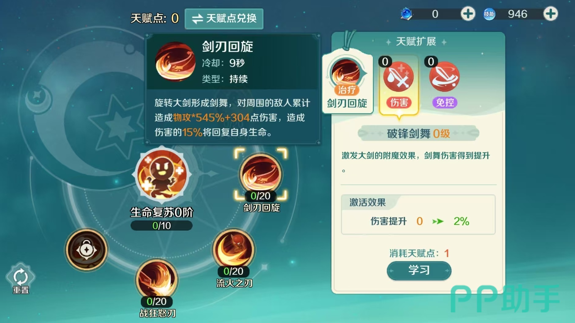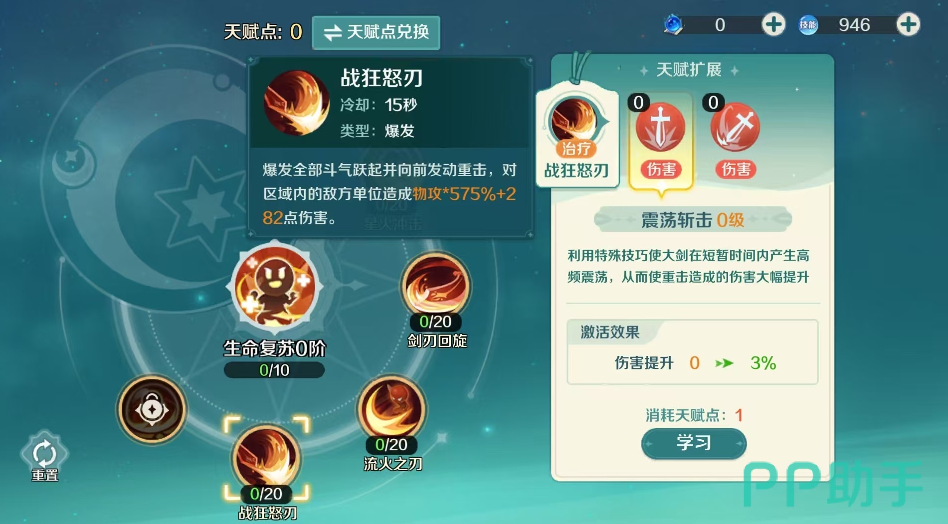 狂刃的核心技能包含星火冲击、剑刃回旋、流火之刃、战狂怒刃以及盖亚之盾,这些技能覆盖了输出、控制、生存与增益等多个维度,每个技能还设有两个可选的天赋分支,玩家可根据实际需求灵活选择。总体而言,天赋配置主要分为副本推图和PVP竞技两种方向。