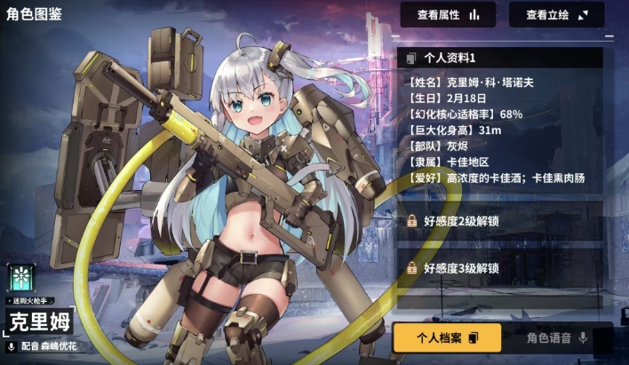 在众多角色中,有几个特别值得新手玩家在初期关注,首先是斯卡蒂,这位被誉为平民战神的角色,她不仅获取简单,而且完成任务后还能提升技能效果,性价比极高,对于平民玩家来说,斯卡蒂无疑是前期开荒的最佳帮手,另一位则是克里姆,虽然只是一星角色,但她的魅惑技能却在竞技场和主线剧情中发挥着很大的作用,这个技能能有效地干扰对手,为己方创造有利的战斗条件,是策略性玩家的最爱。