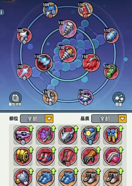 在套装框架确定后,词条配置决定战力上限。词条优先级排序为:击回能>最后攻击>大招冷却>对BOSS增伤>对应流派增伤(物理/魔法/异能)>暴击率>暴击伤害。改造需遵循功能分区原则:核心部件优先洗出大招冷却缩减词条,缓解关键技能空档;项链部位优先提升最终生命值,筑牢生存底线;主武器专注最终攻击加成;躯干与腿部则以回能效率为核心目标,保障技能链连续运转。