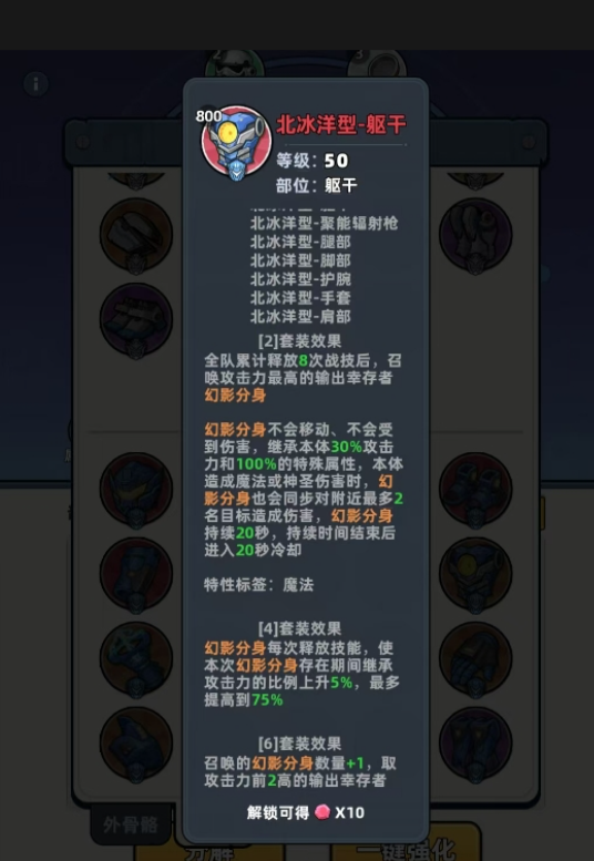 外骨骼系统解锁深度绑定秘境进度。外骨骼专属装备首次掉落于秘境第41层,而核心毕业部件天际砖头需通关秘境第61层方可解锁。因此推荐采用“梯度攻坚”策略:前期集中资源突破高层秘境,快速扩充高阶装备池;中后期使用多倍钥匙定向刷取目标套装与核心部件。需注意,不同套装激活门槛存在差异——北冰之息、擎天立地、动能机甲支持2/4/6件套分阶激活,钢铁洪流等小套装则需集齐3件方可生效。外骨骼共12个装配位(8外圈+4内圈),品质由白至红+共七阶,仅蓝色及以上品质的核心部件才具备改变战局的特殊被动效果。