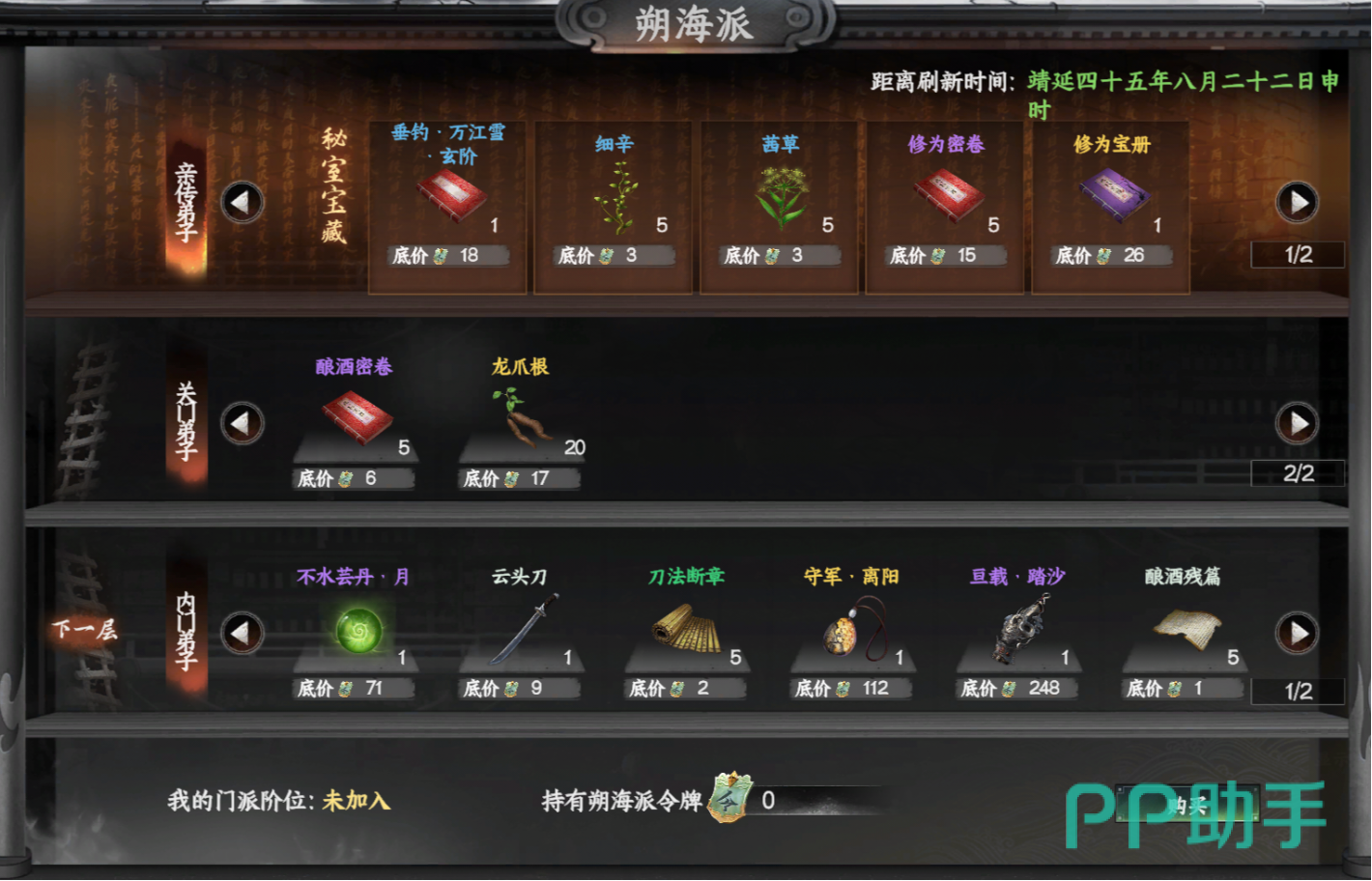 另一种稳定且低门槛的方式是在朔海派内通过门派贡献兑换。玩家可前往贡献堂寻找主关门弟子(坐标:1655,23),此处会定期刷新龙爪根作为可兑换物品。只要积累足够的门派贡献值,即可顺利换取所需药材,适合长期发展型玩家采用。