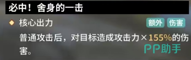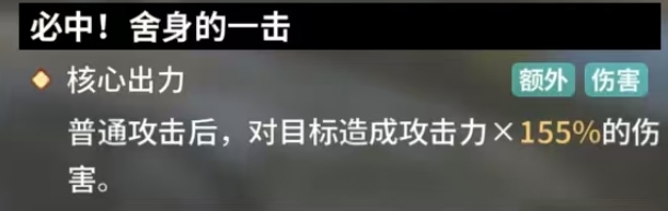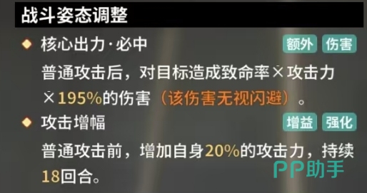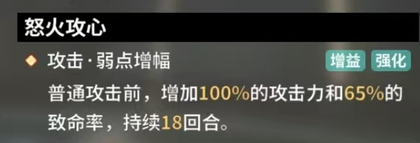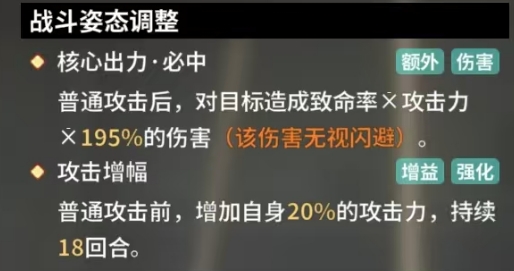 随着角色的觉醒,这个技能也会解锁,其中包含了超限弱点增幅能力,在普通攻击前,角色能够为全体友军增加寂灭效果数量乘以20%的超限致命伤害,且这种伤害加成效果能够持续18回合,而当该技能达到满级属性时,超限弱点增幅的效果再次得到强化,普通攻击前,角色为全体友军增加的超限致命伤害提升至寂灭效果数量乘以50%,这使得友军在战斗中能够造成更为可观的伤害输出。