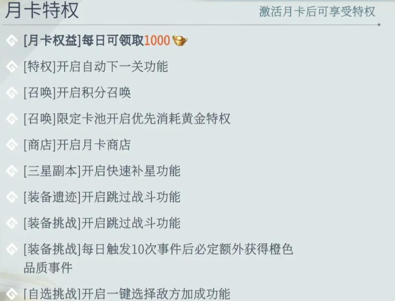 其他实用增益还包括:全局快速挂机加速、普通商店购买次数提升、包子(体力恢复道具)每日购买上限增加等。整体来看,月卡并非单一资源补充工具,而是贯穿养成、战斗、社交、挑战全环节的效率中枢。对于计划深度投入、追求稳定成长节奏的玩家,月卡已构成基础体验的重要组成部分。